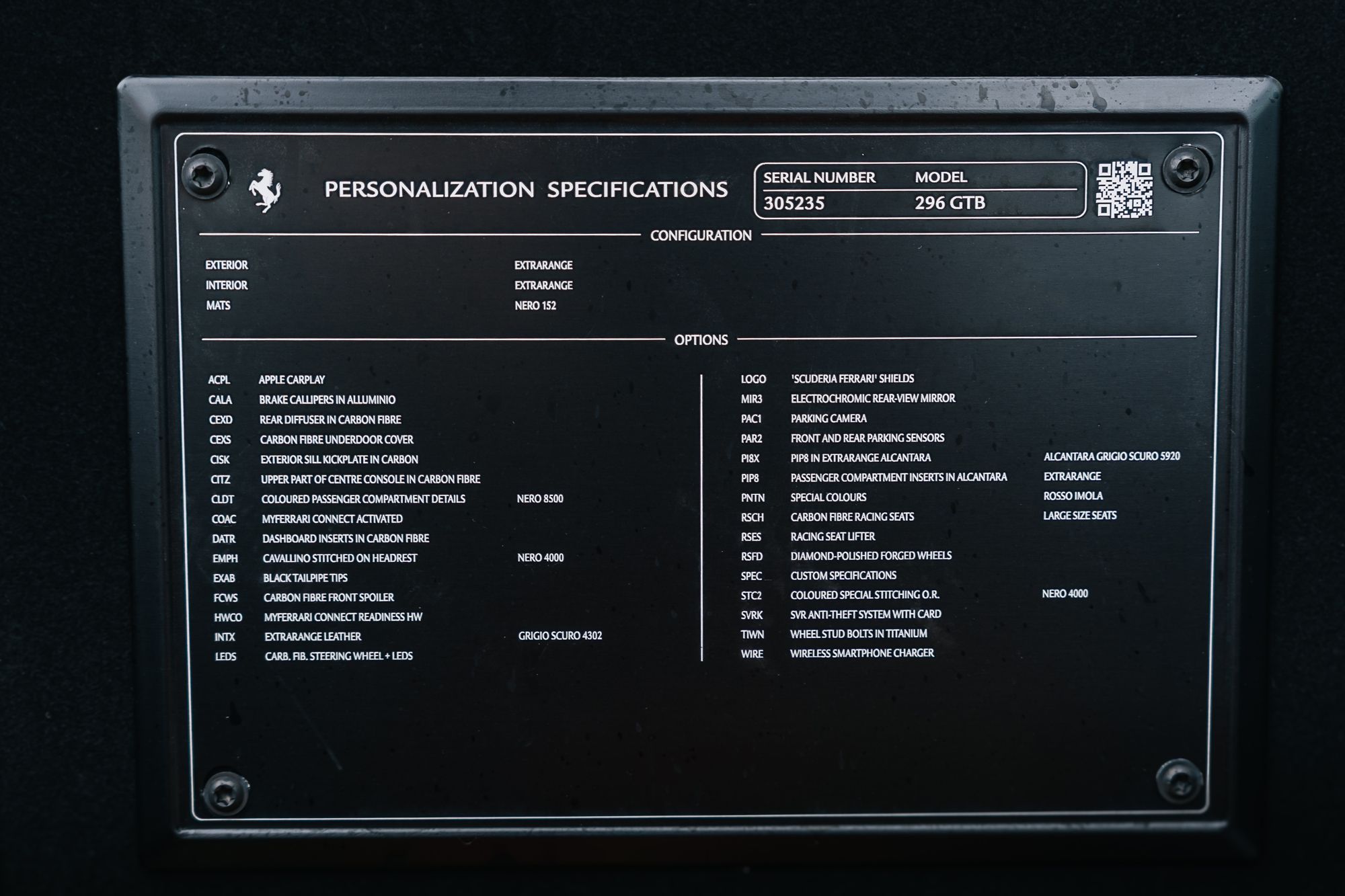 This vehicle comes with the remaining balance of the Ferrari Warranty and 7 Years Genuine Maintenance Programme.